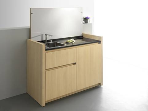 Giống như một cái bàn khi không sử dụng, tuy nhiên nó có đủ một chiếc bồn rửa và hai bếp đun, một lò vi sóng kiểu ngăn kéo, một tủ lạnh và một máy rửa bát dạng nhỏ. Có thể nó không thể đủ đáp ứng nhu cầu sử dụng của những gia đình đông đúc nhưng kiểu bếp nhỏ này sẽ là giải pháp hoàn hảo cho nhưng căn hộ nhỏ và hay không gian chật hẹp.